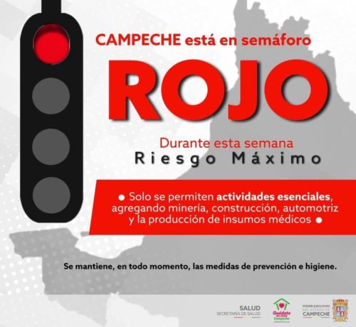 Solo actividades esenciales, Campeche sigue en ROJO EPIDEMIOLÓGICO