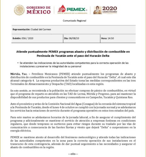 Atención de Pemex ante huracán Delta