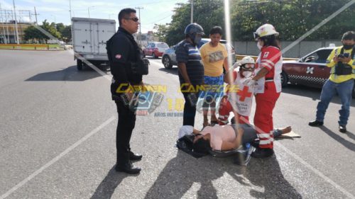 Motociclista derrapa para no chocar otro auto