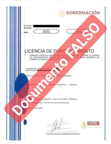 DETECTAN LICENCIAS DE FUNCIONAMIENTO APÓCRIFAS