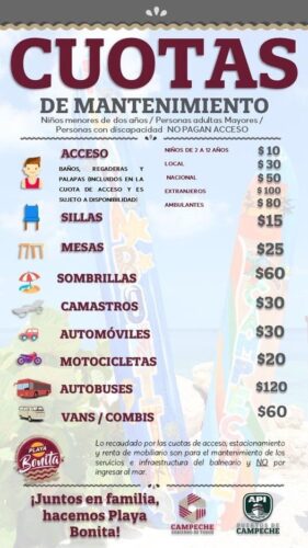 PLAYA BONITA MODIFICA SUS TARIFAS