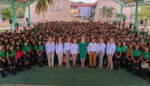 ENCABEZA DIRECTORA GENERAL HOMENAJE CÍVICO EN EL PLANTEL POMUCH DEL CECYTEC