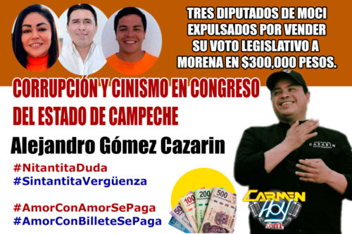 DIPUTADOS DE MOCI EXPULSADOS POR VENDER SU VOTO LEGISLATIVO A MORENA EN $300,000 PESOS.