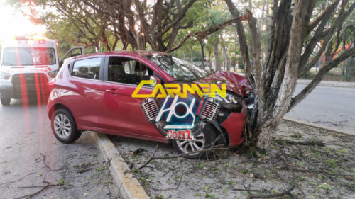 Ebrio se estampa en árbol