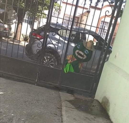 Una abuelita se vistió de sapo para poder visitar a sus nietos y verlos aunque sea de lejos, esto ante las medidas de aislamiento por el en Juárez, Nuevo León México. Su hija público :