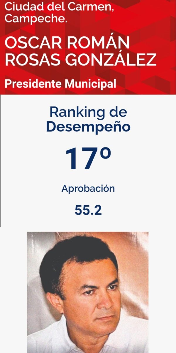 El alcalde de Carmen, Óscar Rosas González, entró en el ranking de los 20 mejores alcaldes del país, esto evaluado por la ciudadanía mediante RankingdeAlcaldes.Com en si séptima emisión.