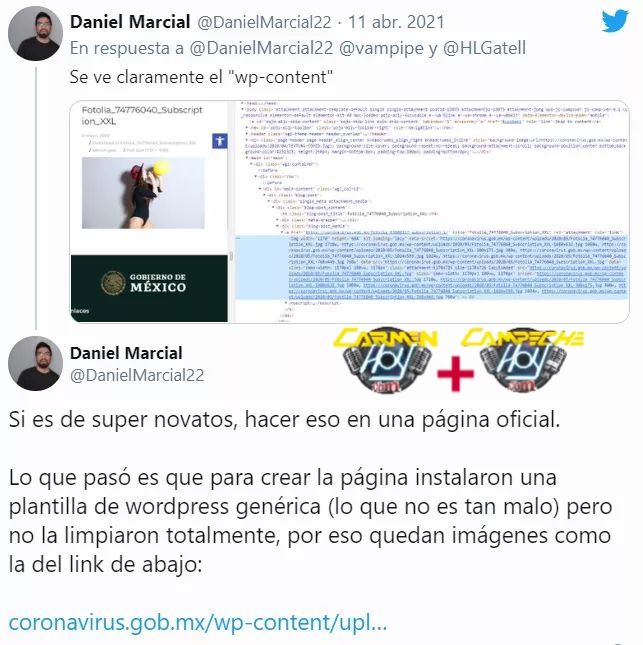 Por su parte uno de los usuarios, señala que es un error de programación y las imágenes pertenecen a una plantilla de WordPress.