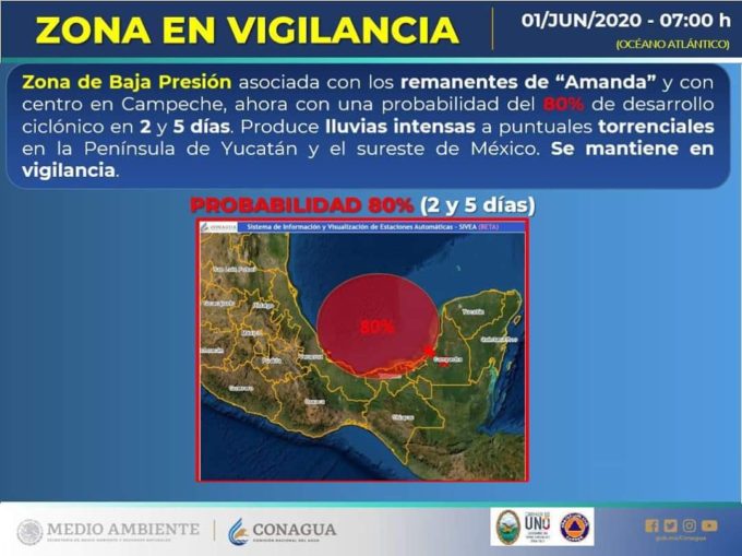 Se mantiene en vigilancia una zona de baja presión al sur del Golfo de México, con probabilidad para desarrollo ciclónico.