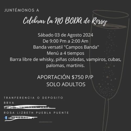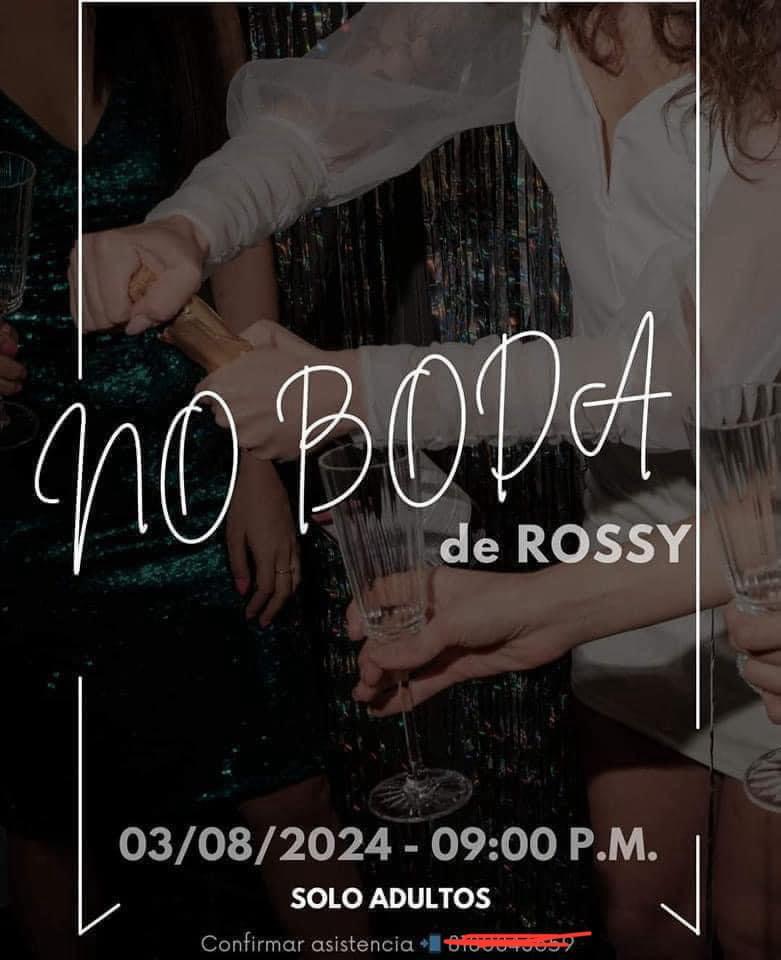 Rossy invita a todos a unirse a la celebración de la soltería, prometiendo una noche de diversión, baile, comida y bebida. Los detalles adicionales se compartirán con los asistentes confirmados. ¿Qué les parece?