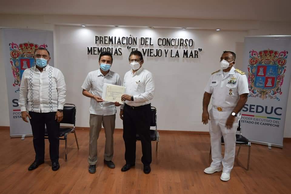 El secretario de Educación, Ricardo Koh Cambranis, entregó premios a los ganadores de la fase estatal del Concurso Nacional Literario “Memorias del Viejo y la Mar 2021”, convocado por la Secretaría de Marina Armada de México e impulsado por la Secretaría de Educación del Estado.