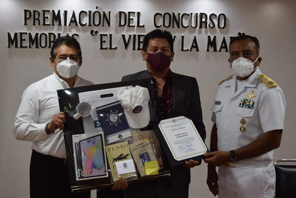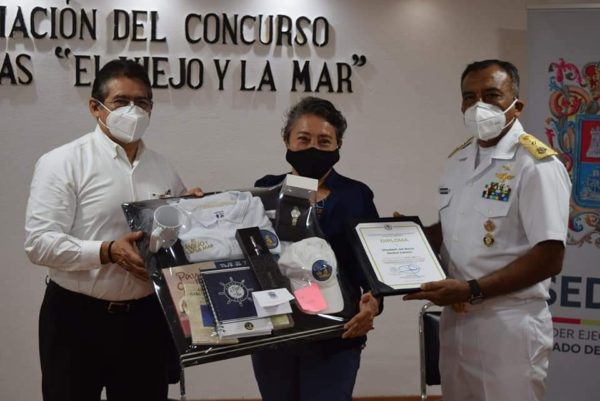 Ante el contralmirante Jaime Martín Constantino Herrera, comandante de la Base Aeronaval de Campeche de la Secretaría de Marina Armada de México; el secretario de Educación, a nombre del gobernador Carlos Miguel Aysa González, felicitó a los galardonados por su destacada participación en este concurso, en el que realzaron algo de lo más preciado de nuestra tierra campechana: el mar.