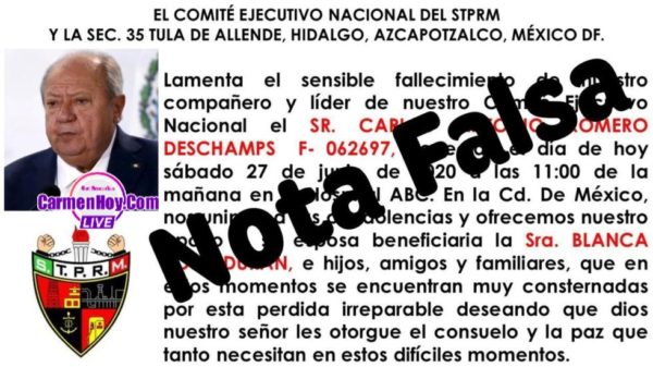 La información falsa señala que Romero Deschamps murió en el Hospital ABC, sin embargo, ni el hospital ni la familia del exlíder del Sindicato de Trabajadores Petroleros de la República Mexicana, se han pronunciado al respecto.