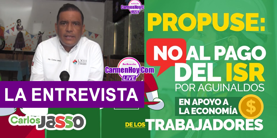 En entrevista el diputado local Carlos Cesar Jasso Rodríguez, nos habla sobre la propuesta realizada en el Congreso del Estado de Campeche para que el Congreso de la Unión reforme el artículo 93, para exentar del pago de ISR en los aguinaldos de los trabajadores que ganen menos de 20 mil pesos mensuales, lo cual contribuiría a que las familias cuenten con mayor recurso este fin de año.