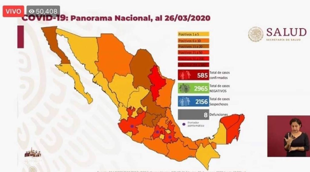 SUBE A 585 LOS CASOS DE CORONAVIRUS EN MÉXICO