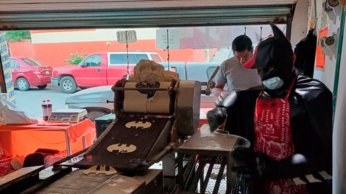 El local no solo se conformó con darle una nueva forma al alimento preferido de todos los mexicanos, sino que también llevaron al mismísimo Batman para que estuviera pendiente de toda la producción; eso sí, con el debido uso de cubrebocas para evitar la propagación de COVID-19 entre clientes y empleados.