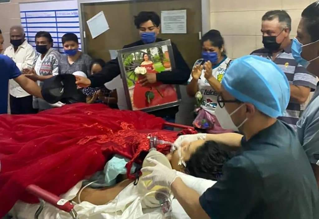 La joven fue escoltada por vallas humanas, y luciendo el vestido de fiesta que usó en su cumpleaños 15, un camillero la condujo hasta el quirófano en donde se procuraron con éxito hígado, riñones y córneas.