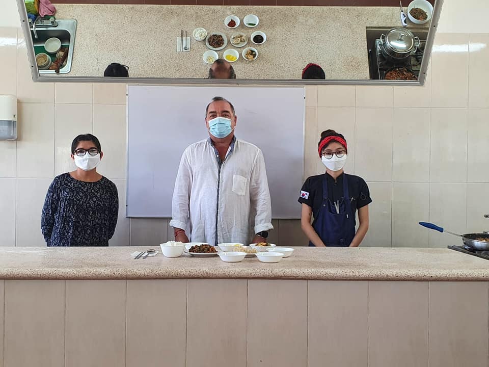 Además como parte de la enseñanza adquirida en su formación y estudios de la gastronomía de este país, los jóvenes hicieron una magnífica demostración gastronómica de la cocina coreana.