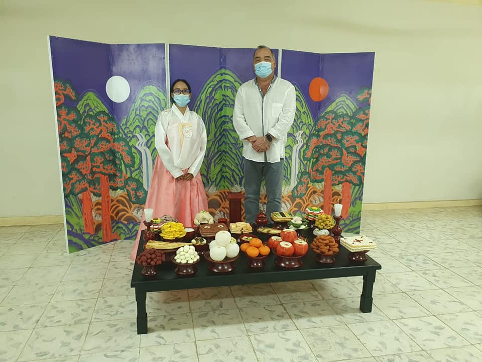 En ese contexto, de la formalización próximamente del convenio de colaboración con las instituciones educativas de la República de Corea, egresados y alumnos de la Escuela de Gastronomía del Instituto Campechano presentaron una exposición de Altares en homenaje a los difuntos, ejemplificando la cultura, costumbre y tradición del país asiático.