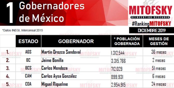 Es importante señalar que en este ranking, al asumir el cargo de gobernador sustituto Aysa González en agosto de 2019, ocupó el lugar 24 de la lista de los mandatarios estatales mejor evaluados; en septiembre del mismo año el 23; en octubre, el sitio 26 al igual que en el mes de noviembre y el lugar 21 en diciembre de 2019.