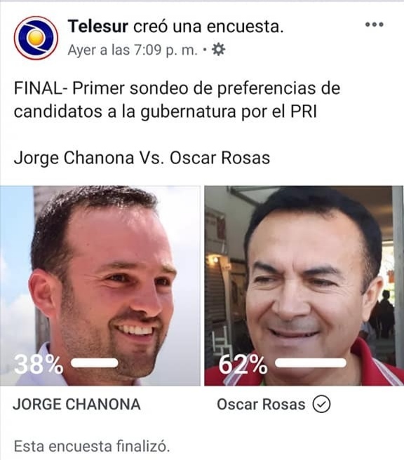En esta última ronda de las encuestas Óscar Rosas superó a Jorge Chanona con un 62% contra el 38%, demostrando así que durante este año de su gobierno la ciudadanía lo respalda.