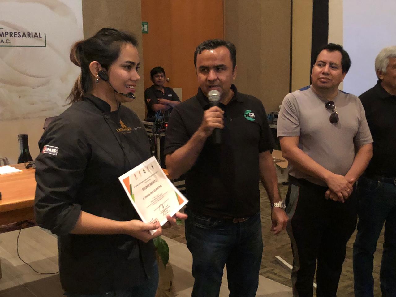 Al término de la exitosa participación de la Chocolatier Vinixxa Anguas Martínez, el presidente del Consejo Coordinador de Carmen, el Ing. Alejandro Fuentes Alvarado, le entregó un diploma de reconocimiento y externo que es un gusto enorme la participación de jóvenes talentos como ella, a quien le reiteró su apoyo y su respaldo del órgano empresarial más importante de Ciudad del Carmen.