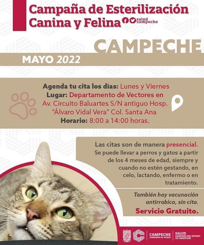 “Invitamos a la ciudadanía a estar pendientes de las publicaciones en la página de Facebook Salud Campeche donde se informará de las aperturas y cierres de campañas, pues se pretende programar otra jornada de esterilización para el mes de octubre”, dijo.