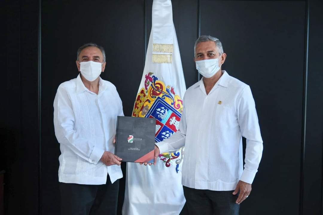 Gobernador Carlos Miguel Aysa González recibe el #2Informe de actividades del Poder Legislativo de manos del Dip. Ramón Méndez Lanz, presidente de la Junta de Gobierno y Administración del H. Congreso del Estado.