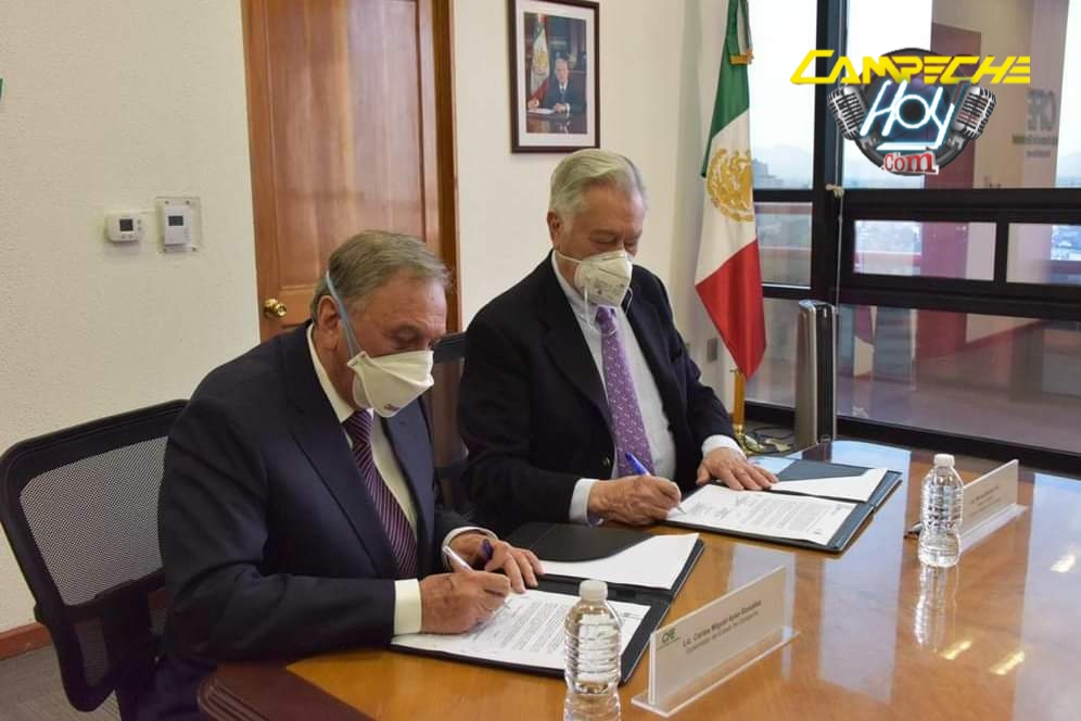 San Francisco de Campeche. – El gobernador Carlos Miguel Aysa González esta tarde firmó con el director general de la Comisión Federal de Electricidad, Lic. Manuel Bartlett Díaz, el Convenio de Prórroga y Adición, mediante el cual refrendaron el compromiso de beneficiar a 269 mil 175 familias campechanas con el subsidio estatal del 50 % sobre su consumo de energía durante el verano.