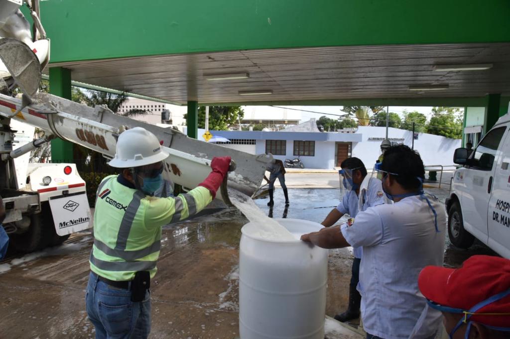 Agradeció públicamente la participación de la empresa CEMEX que, a través de sus vehículos, específicamente, una mezcladora que en esta ocasión sirvió para hacer un proceso de desinfección profundo con seis mil litros de sanitizante en las áreas de acceso del nosocomio.