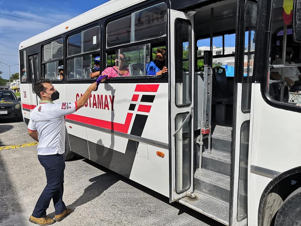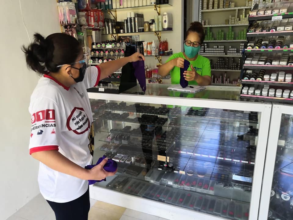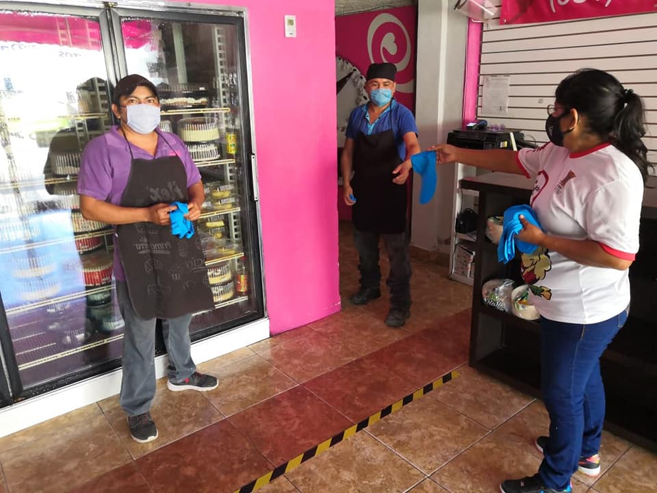 Dando cumplimiento de las instrucciones del Gobernador Carlos Miguel Aysa González para reforzar la prevención contra el contagio del Covid-19, personal del Consejo Estatal de Seguridad Pública (CESP) intensificó la distribución de 735 cubrebocas reutilizables entre comerciantes locales, propietarios de pequeños comercios, mercados, centros comerciales y ciudadanos que transitaban por la Av. Concordia.