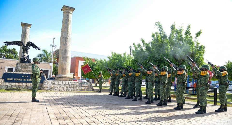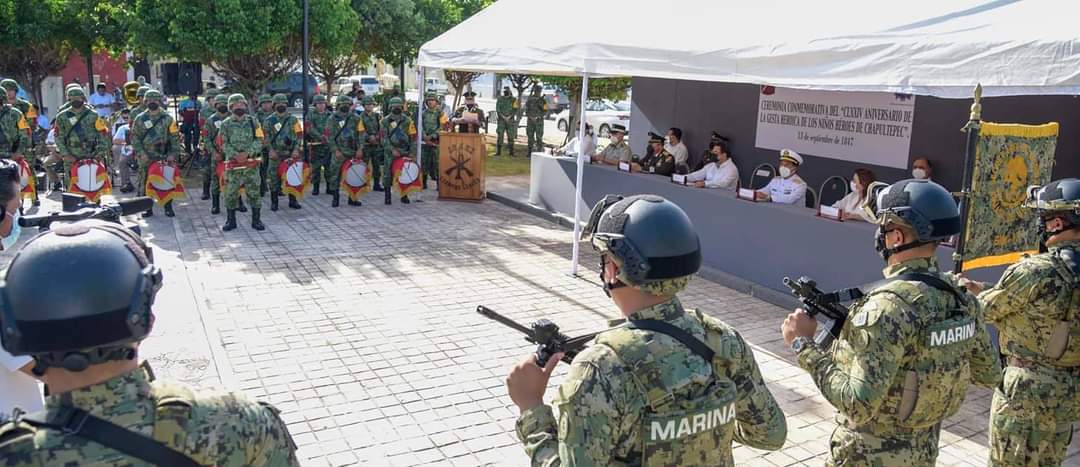 El secretario general de Gobierno, Jorge Argáez Uribe, en representación del gobernador Carlos Miguel Aysa González encabezó junto a los comandantes de la 33ª Zona Militar, Hernán Cortés Hernández y de la Tercera Región Naval, Héctor Capetillo López, la ceremonia conmemorativa del CLXXIV aniversario de la Gesta Heroica de los Niños Héroes de Chapultepec.