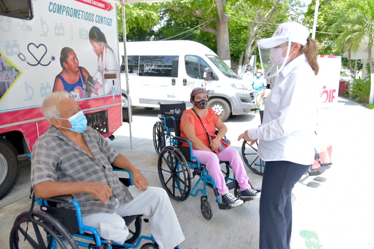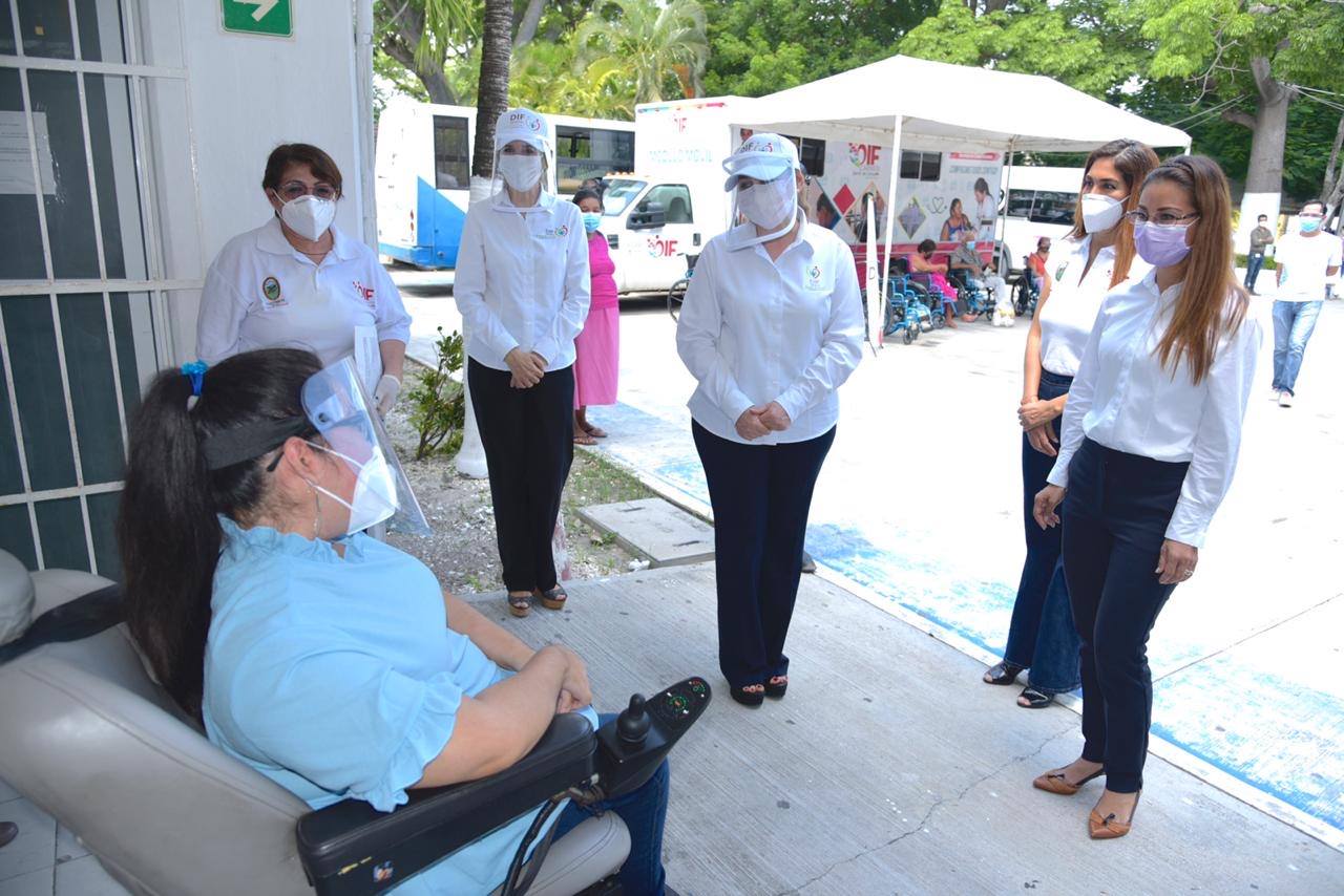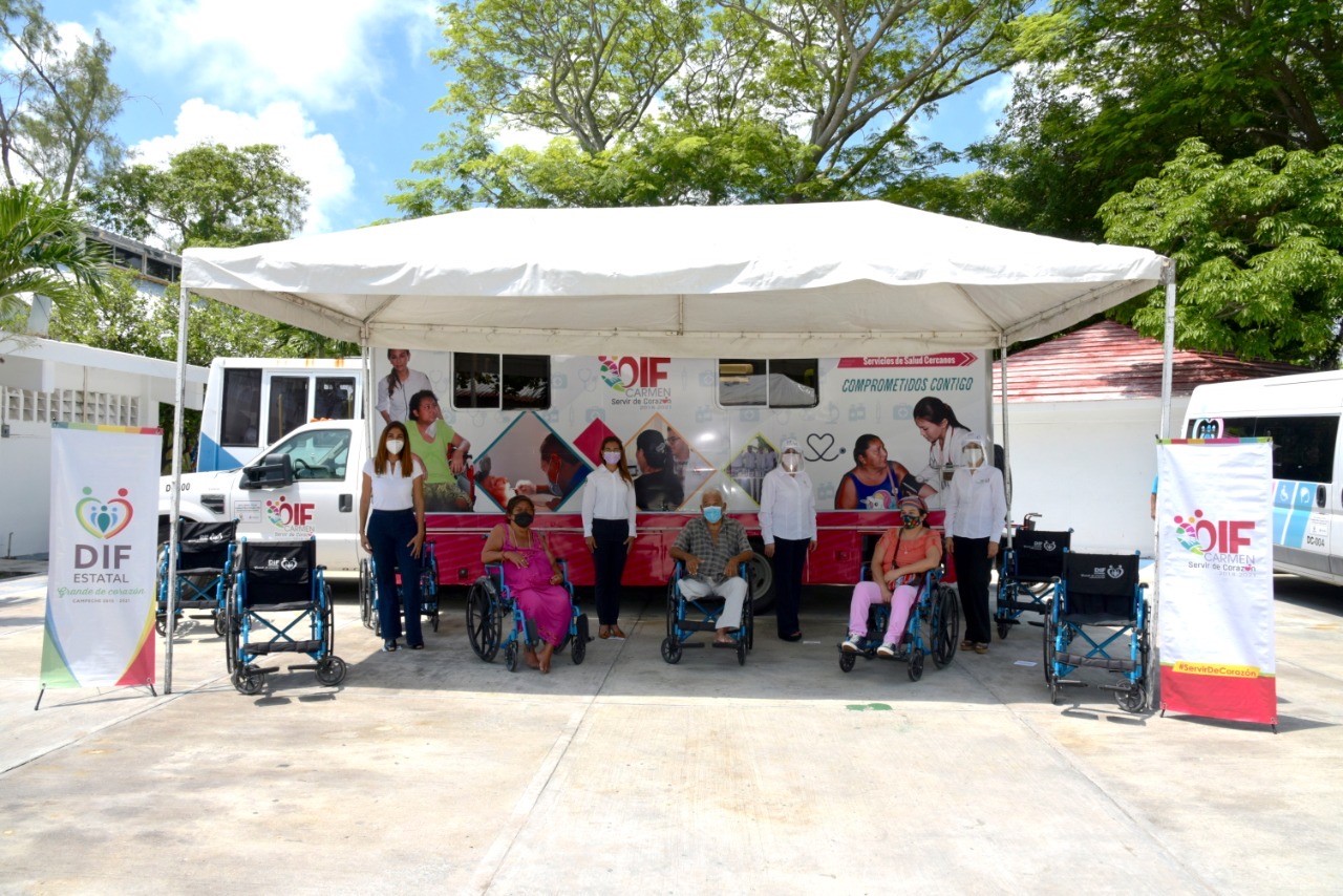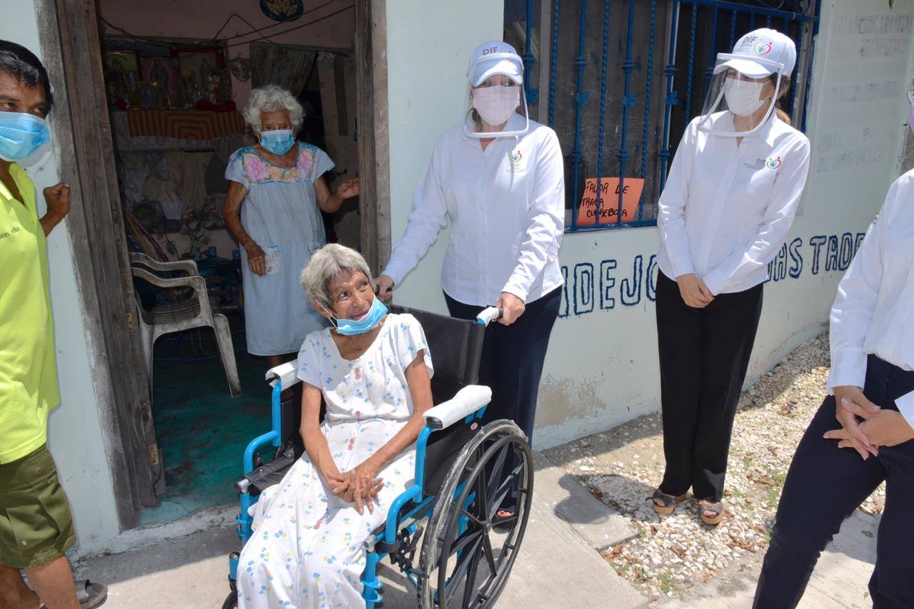 Con el apoyo del Poder Ejecutivo del Estado encabezado por Carlos Miguel Aysa González, la presidenta del Patronato del Sistema Estatal para el Desarrollo Integral de la Familia (DIF), Victoria Damas de Aysa, acompañada de la directora general del SEDIF, Sonia María Castilla Treviño, entregó sillas de rueda al DIF municipal de Carmen, mismas que serán entregadas a personas con discapacidad motriz, así como despensas, cubre bocas, suplemento alimenticio para adulto, ropa en buen estado, cobertores, kits de limpieza, gel antibacterial y pañales para adulto a familias carmelitas en situación vulnerable.