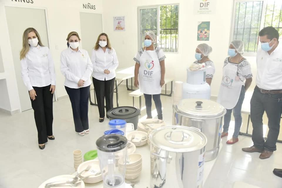 La presidenta del Patronato del Sistema Estatal para el Desarrollo Integral de la Familia (DIF), Victoria Damas de Aysa, en compañía de la directora general, Sonia María Castilla Treviño, inauguró el Espacio de Alimentación, Encuentro y Desarrollo Comunitario “Los Peques de Santa Cruz” en la localidad de Santa Cruz de Rovira del municipio de Champotón.
