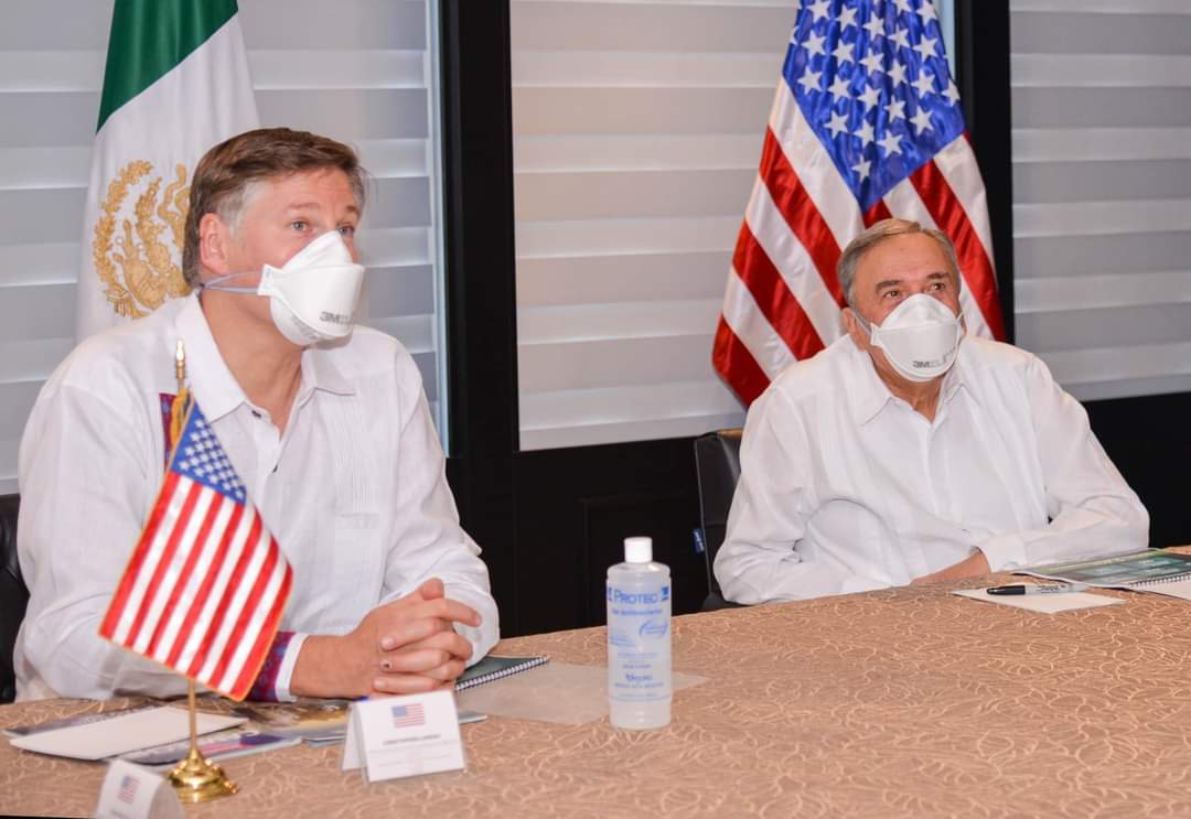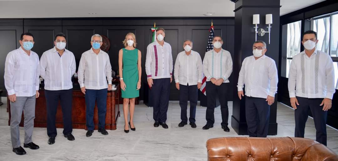 Para abundar en asuntos relacionados con los temas energético, económico, de seguridad y la pandemia de COVID-19, el embajador de Estados Unidos en México, Christopher Landau y el gobernador Carlos Miguel Aysa González sostuvieron una reunión de trabajo en Palacio de Gobierno, acompañados de la cónsul general de Estados Unidos en Mérida, Courtney Beale y de los titulares de las secretarías de Desarrollo Económico, Ricardo Ocampo Fernández; Desarrollo Energético Sustentable, José Antonio del Río González; Salud, José Luis González Pinzón; Seguridad, Jorge Argáez Uribe; Turismo, Jorge Manos Esparragoza y de la Fiscalía General del Estado, Juan Manuel Herrera Campos.