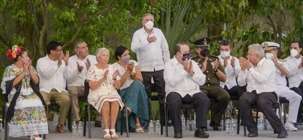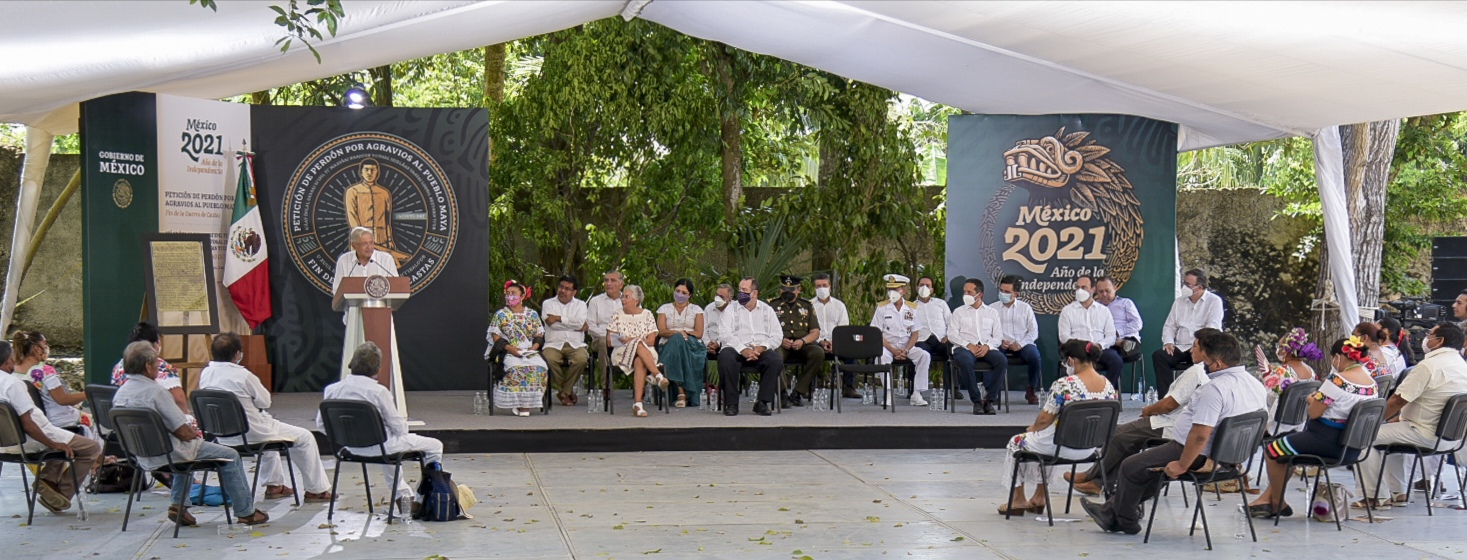 QUINTANA ROO. – El gobernador Carlos Miguel Aysa González asistió a la ceremonia de petición de perdón por agravios al pueblo maya, fin de la Guerra de Castas, que encabezó el presidente Andrés Manuel López Obrador en la comunidad de Tihosuco del municipio de Felipe Carrillo Puerto; en el evento también estuvieron presentes la secretaria de Gobernación, Olga Sánchez Cordero y los mandatarios estatales de Chiapas, Tabasco, Quintana Roo y Yucatán, entre otras autoridades.