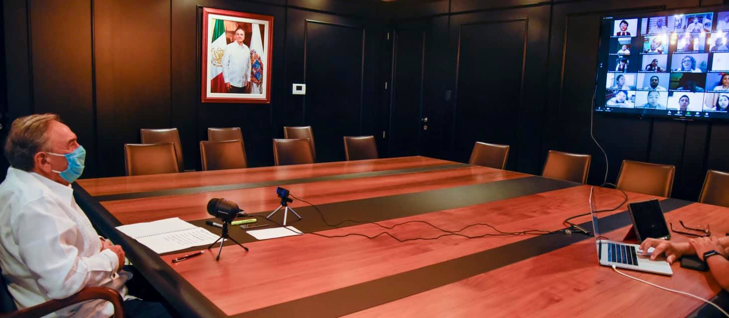 Desde oficinas de Palacio de Gobierno, en videoconferencia con estudiantes, maestros y directivos, el gobernador Carlos Miguel Aysa González dio inicio al ciclo escolar a distancia 2020-2021, con lo que 182 mil 722 estudiantes de dos mil 96 centros educativos de nivel preescolar, primaria y secundaria tomarán desde hoy clases a través de la radio, televisión o internet.