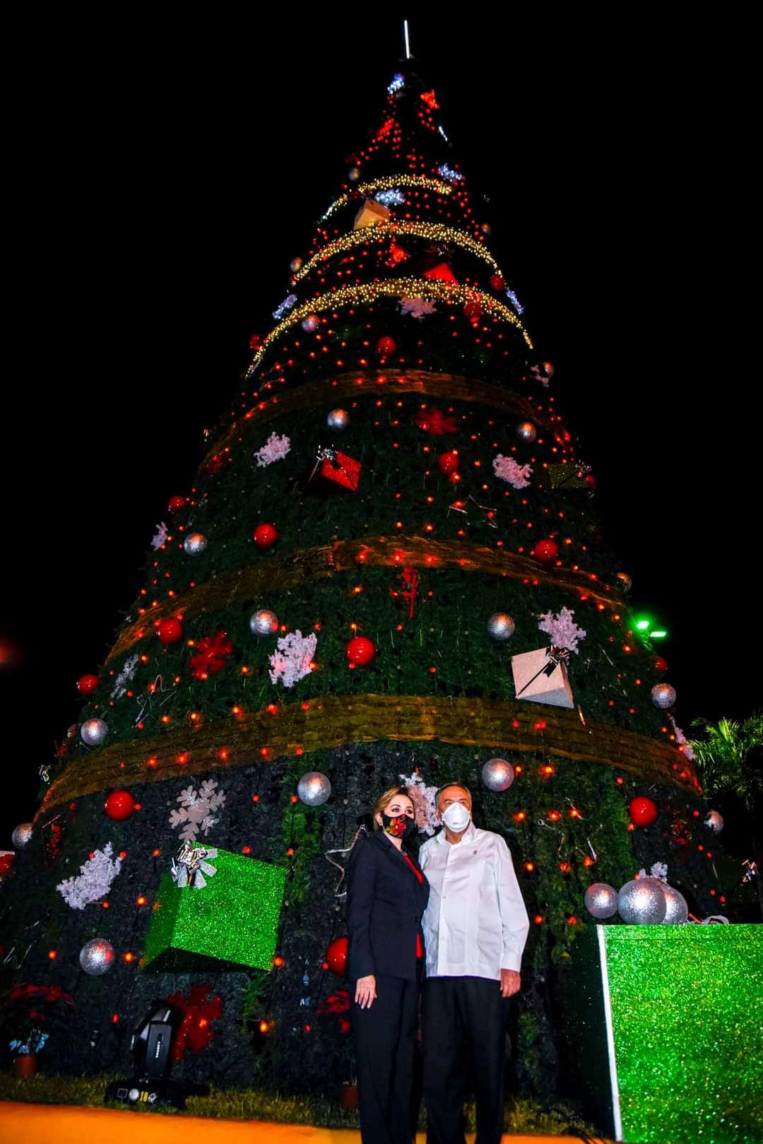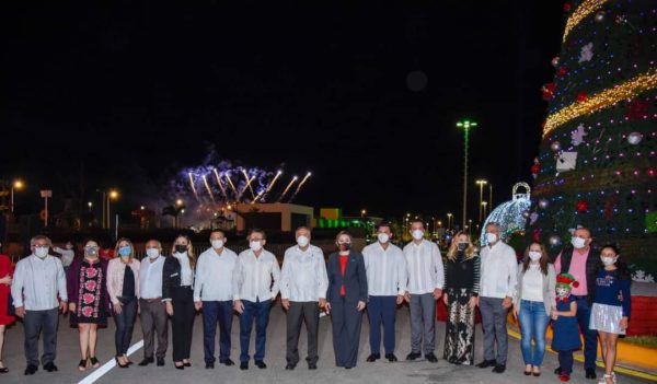 El gobernador Carlos Miguel Aysa González y su esposa Victoria Damas de Aysa, presidenta del Patronato del Sistema Estatal DIF, realizaron el encendido del Árbol Navideño de 27 metros de alto -en la ampliación del malecón de la ciudad- que ofrecerá un espectáculo visual bajo estrictos protocolos sanitarios para garantizar la protección de la salud de los asistentes.