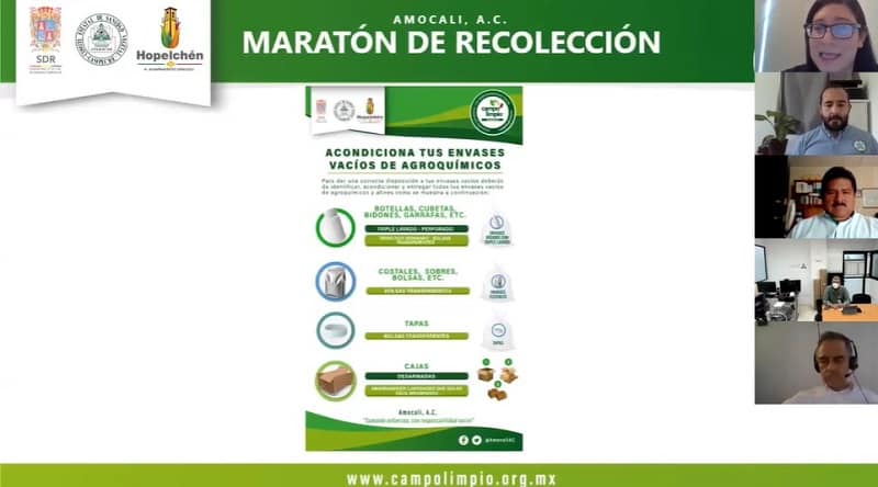 El secretario de Desarrollo Rural, Ignacio España Novelo, dio a conocer lo anterior y agregó que, a diferencia de otros años, en esta ocasión la ceremonia de arranque de tan importante labor se llevó a cabo de manera virtual, es decir a través de la red de internet, al tiempo que en los centros de acopio instalados en puntos estratégicos de la geografía estatal, personal técnico recibe de los productores los envases vacíos, cumpliendo en todo momento los protocolos sanitarios para evitar el contagio del coronavirus.