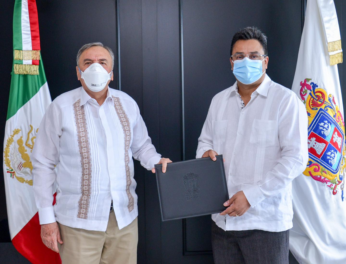 El Gobernador Carlos Miguel Aysa González al Dr. Jorge Argáez Uribe como nuevo secretario general de Gobierno del Poder Ejecutivo del Estado. Lo instruyó a retomar la agenda política, social y de seguridad en beneficio de todas las familias campechanas; asimismo, fortalecer el trabajo en equipo para que #Campeche continúe con un clima de paz social y gobernabilidad. Reconoce en el ahora extitular de la Secretaría de Seguridad Pública, un servidor público comprometido y cercano a la gente, con experiencia y una amplia trayectoria profesional.