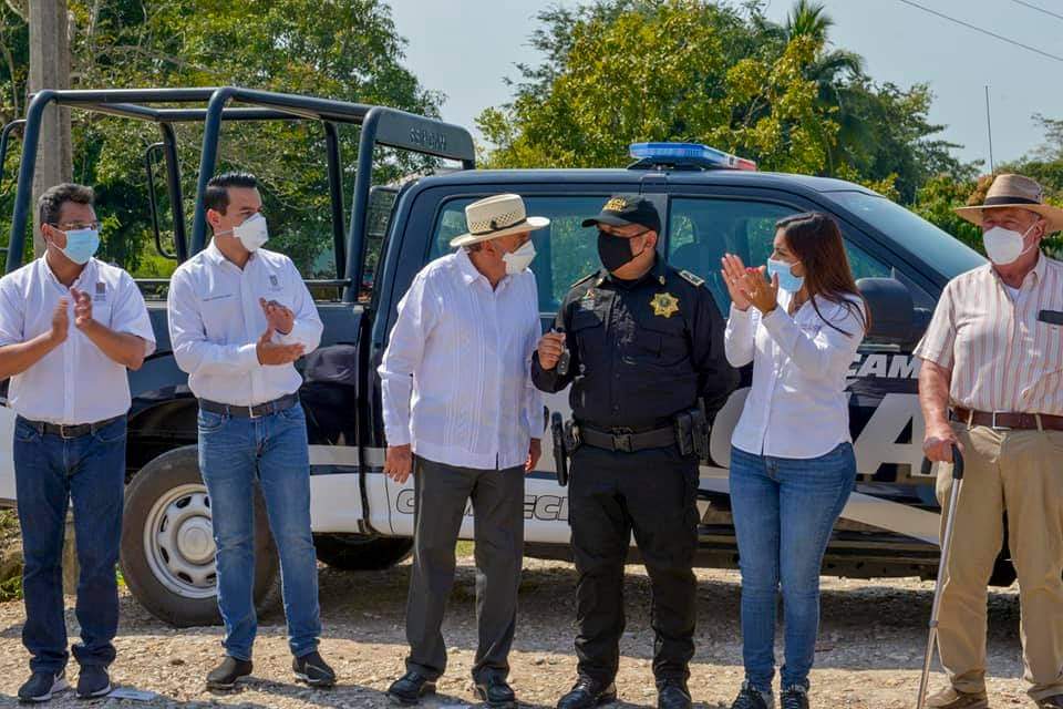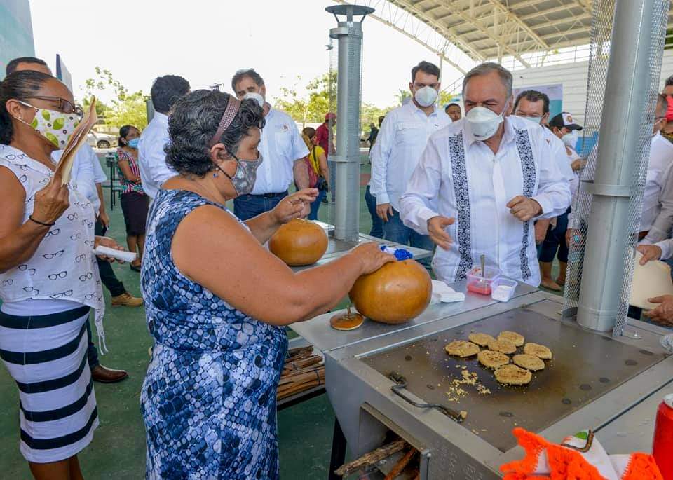 Luego, acompañado del alcalde, Salvador Farías González, a través de Bancampeche hizo entrega de créditos a microempresarios por un monto de 312 mil pesos; 160 estufas ecológicas para el mismo número de familias de 12 localidades, con valor de 741 mil 215 pesos; y 76 acciones de vivienda consistentes en pisos firmes de concreto, así como apoyos para la construcción y mejoramiento de viviendas por 15 millones 778 mil 232 pesos que benefician a un total de 138 familias.