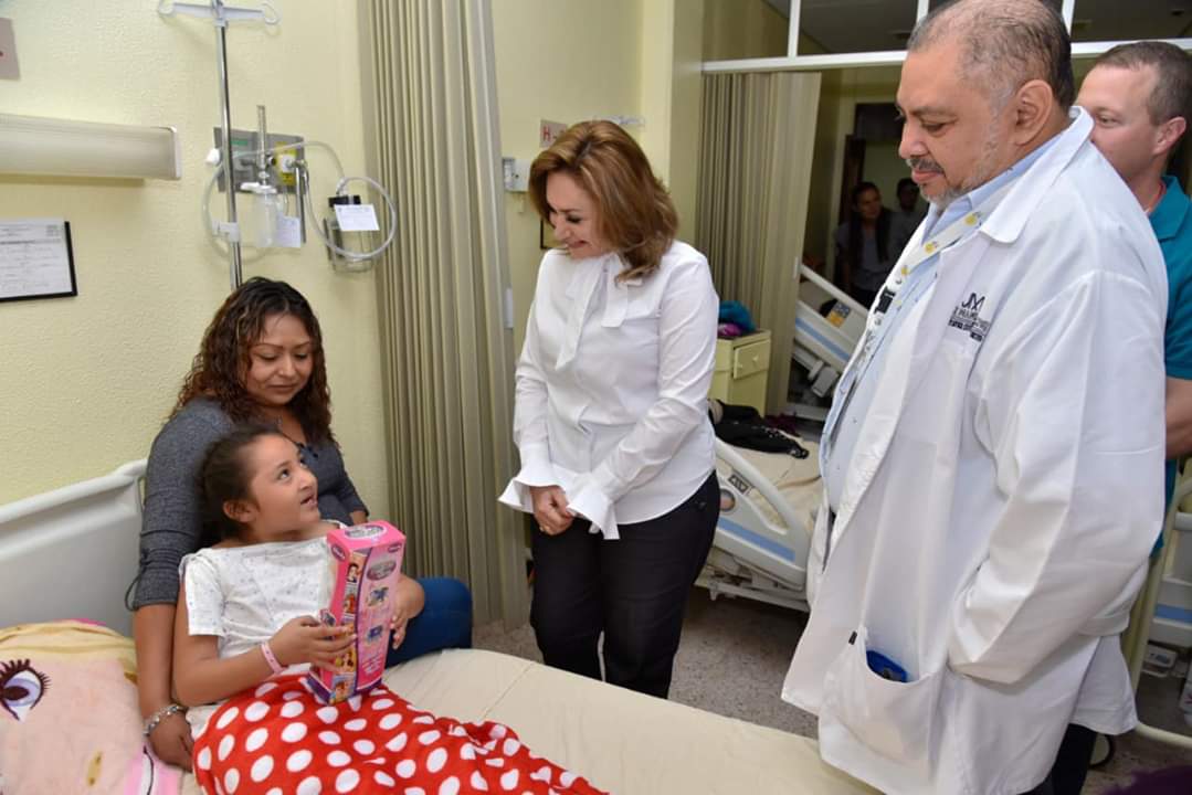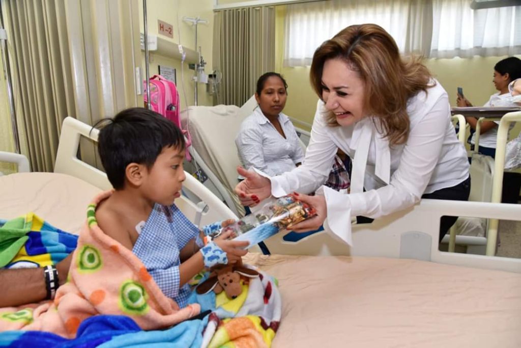 La Presidenta del Patronato del DIF Estatal, Victoria Damas de Aysa visitó el área de hospitalización donde se encuentran ingresados los pacientes que serán intervenidos quirúrgicamente de Labio y Paladar Hendido, del programa “Uniendo Voluntades, Hacemos DIFerencia” de Shares International campaña internacional “Sonriendo con el Corazón” y “Médicos por una Sonrisa”, en las instalaciones del Hospital “Dr. Manuel Campos”, donde también entregó presentes a los niños.