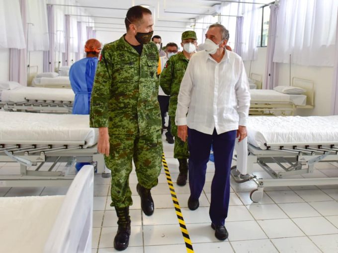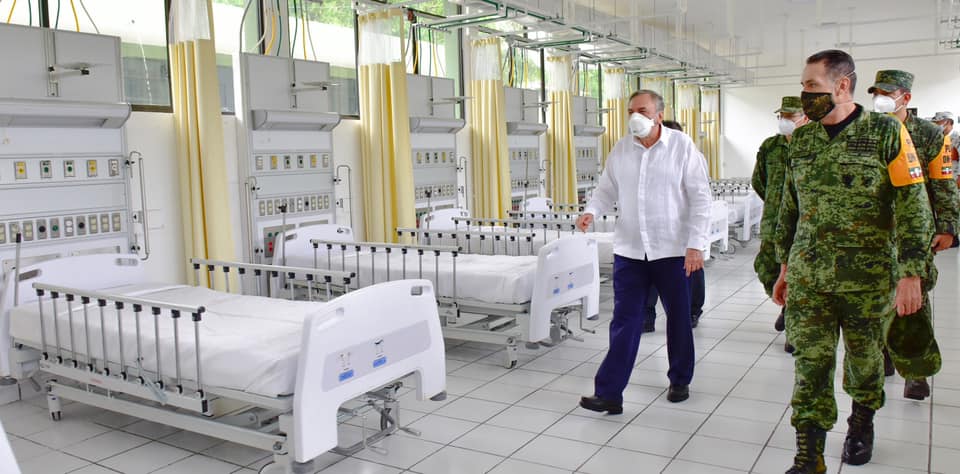El gobernador Carlos Miguel Aysa González recorrió junto con el comandante de la 33ª Zona Militar, Enrique Dena Salgado, la Unidad Operativa de Hospitalización y Terapia Intensiva COVID-19 del 10º Batallón de Infantería que cuenta con 40 camas e instrumental y personal médico especializado.