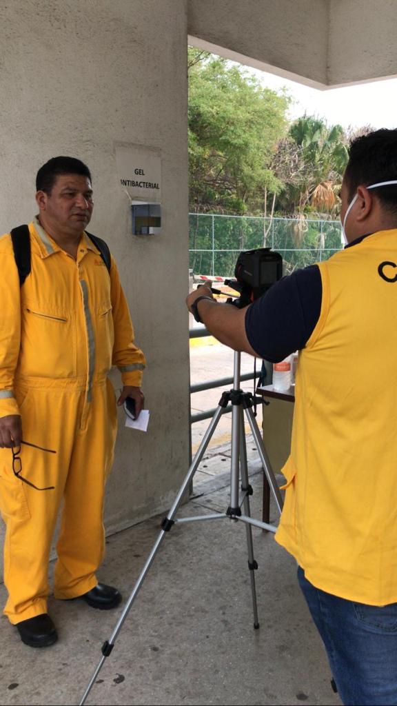 También se realiza toma de temperatura mediante termómetro digital y se informa a los trabajadores petroleros la importancia de mantener la sana distancia, el constante lavado de manos, uso de gel alcohol y las medidas de higiene y prevención.