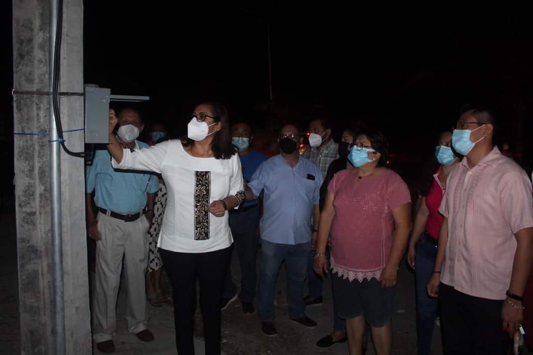 En su primer día como Presidenta Municipal, Cinthya Velázquez Rivera, acompañada del Cabildo y personal directivo, restableció la noche de hoy el servicio del alumbrado público en el malecón de Seybaplaya.