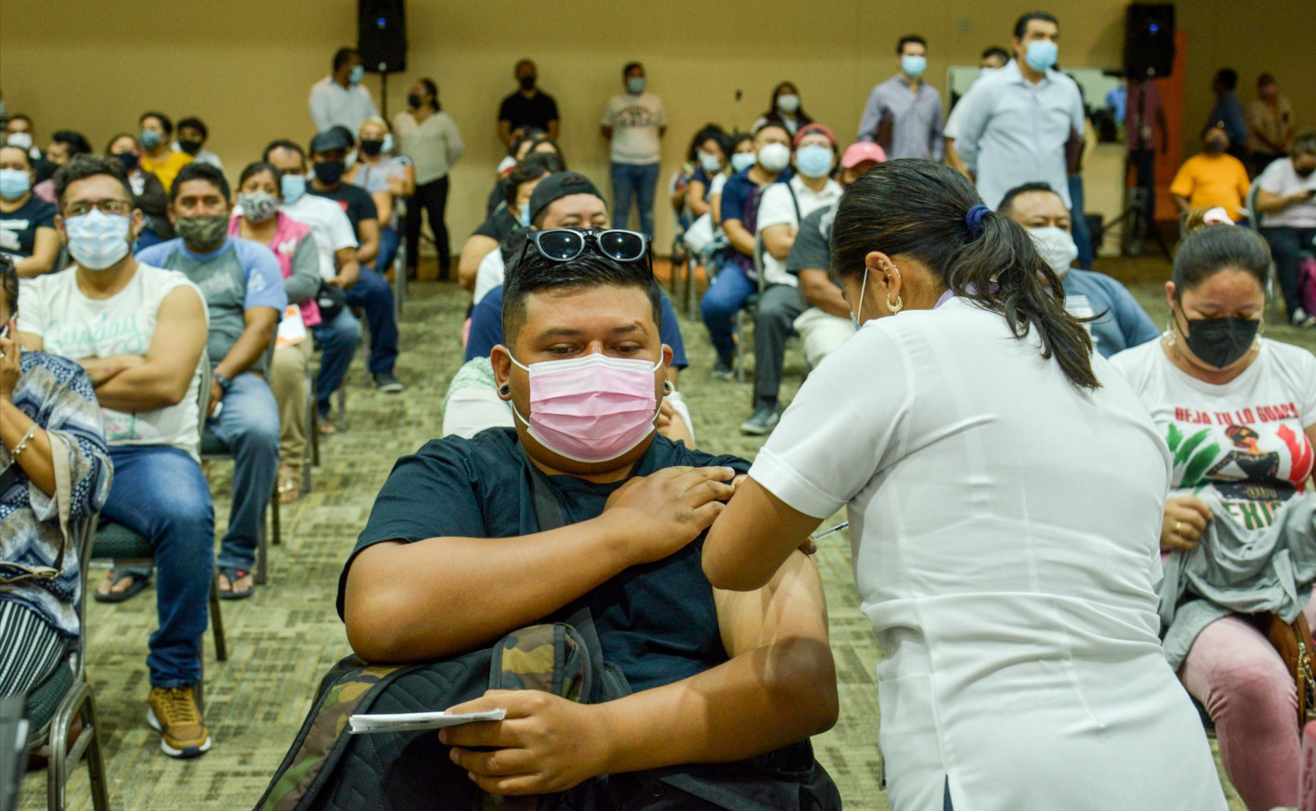 La gobernadora Layda Sansores San Román constató el inicio de la aplicación de la segunda dosis de las vacunas AstraZeneca a personas de 30 a 39 años de edad, que este día inició en los municipios de Campeche y Carmen, en donde se espera vacunar a alrededor de 70 mil personas.