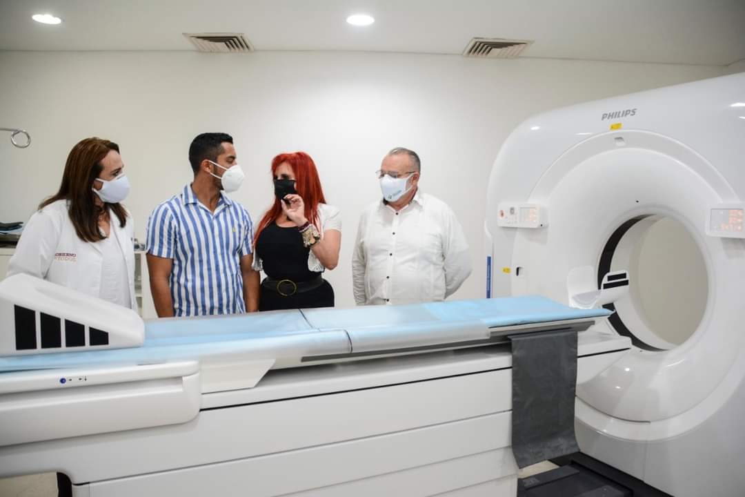 Expresó a la Gobernadora que atendiendo al compromiso asumido con la sociedad campechana, hoy se pone en servicio el tomógrafo, con lo que se repone este equipo de alta tecnología que fortalece al Hospital General “Dr. Javier Buenfil Osorio” y con el cual su oferta se incrementa para poder evaluar diversas partes del cuerpo como tórax, abdomen y pelvis con imágenes de alta calidad y gran precisión, que facilitarán el diagnóstico de fracturas, hemorragias internas, tumores e infecciones en distintos órganos.