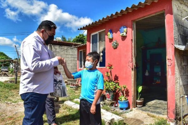 En Nohakal, Martínez Aké visitó al niño Maycol Alejandro Rodríguez Fajardo quien recibió de manera adicional un kit de limpieza bucal; luego caminó por la comunidad a las casas de Dayana Cham, Luis Antonio May Barbosa y Caleb Santiago Alpuche, entre otros.