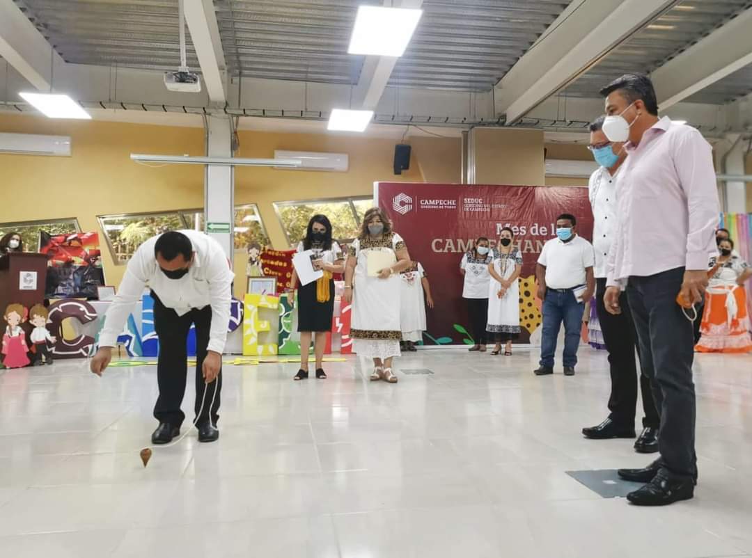 Maestros y alumnos de Educación Inicial, Especial, Preescolar, Indígena, Primaria y Secundaria, realizaron una muestra de juegos tradicionales, como la timbomba, lotería campechana, trompo, balero, paxaques y la chácara.