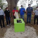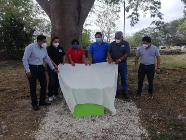 En Calkiní hoy develamos 2 placas, la #44 en la ciudad de Calkini para la protección de un Pich (Enterelobium cyclocarpum) de aproximadamente 80 años y en la Junta Mpal. De Nunkiní, la placa #43 para la protección de un árbol de Ceibo (Ceiba pentandra) de más de 130 años.