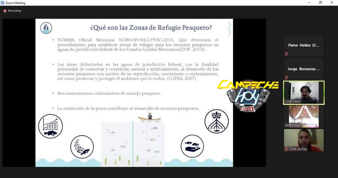 San Francisco de Campeche. – En representación de la titular Ileana Herrera Pérez, el Biol. Jorge Berzunza Chio, encargado de la Dirección de Patrimonio Ambiental, participó en un Taller virtual para socializar el diseño de construcción de un “Refugio Pesquero” en la zona conocida como “la barra” en Isla Aguada, del Municipio de Carmen.
